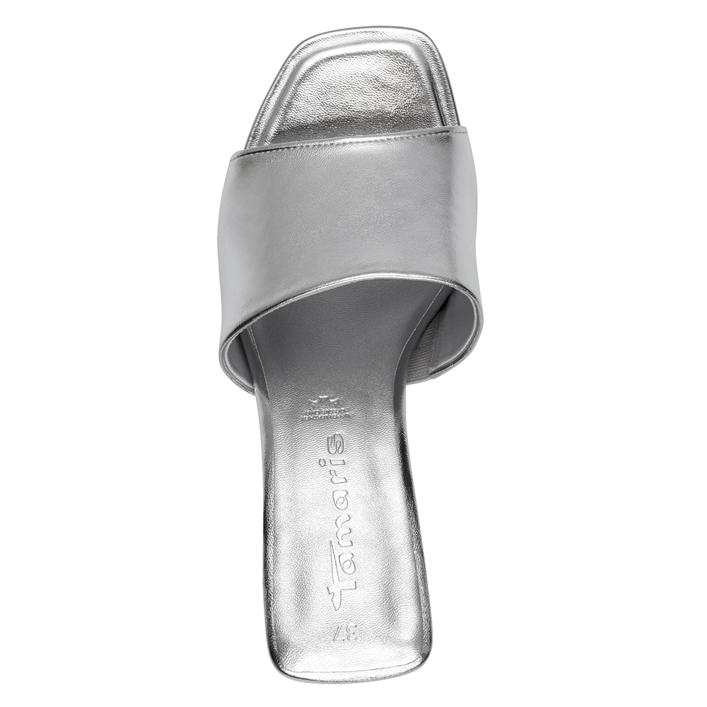 Αναδείξτε το στυλ σας με τη γυναικεία καλοκαιρινή παντόφλα Tamaris 27249 σε εντυπωσιακό ασημί χρώμα.