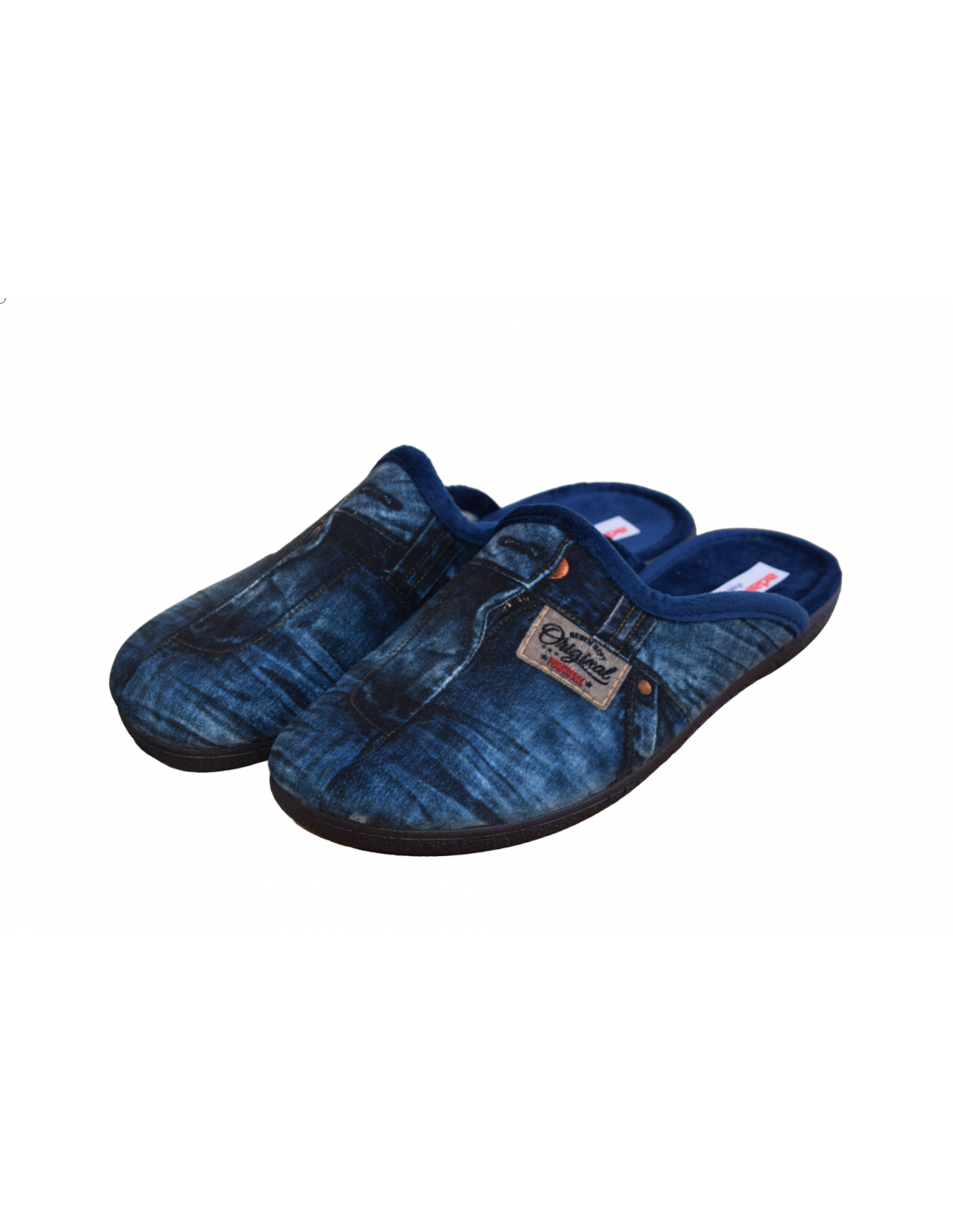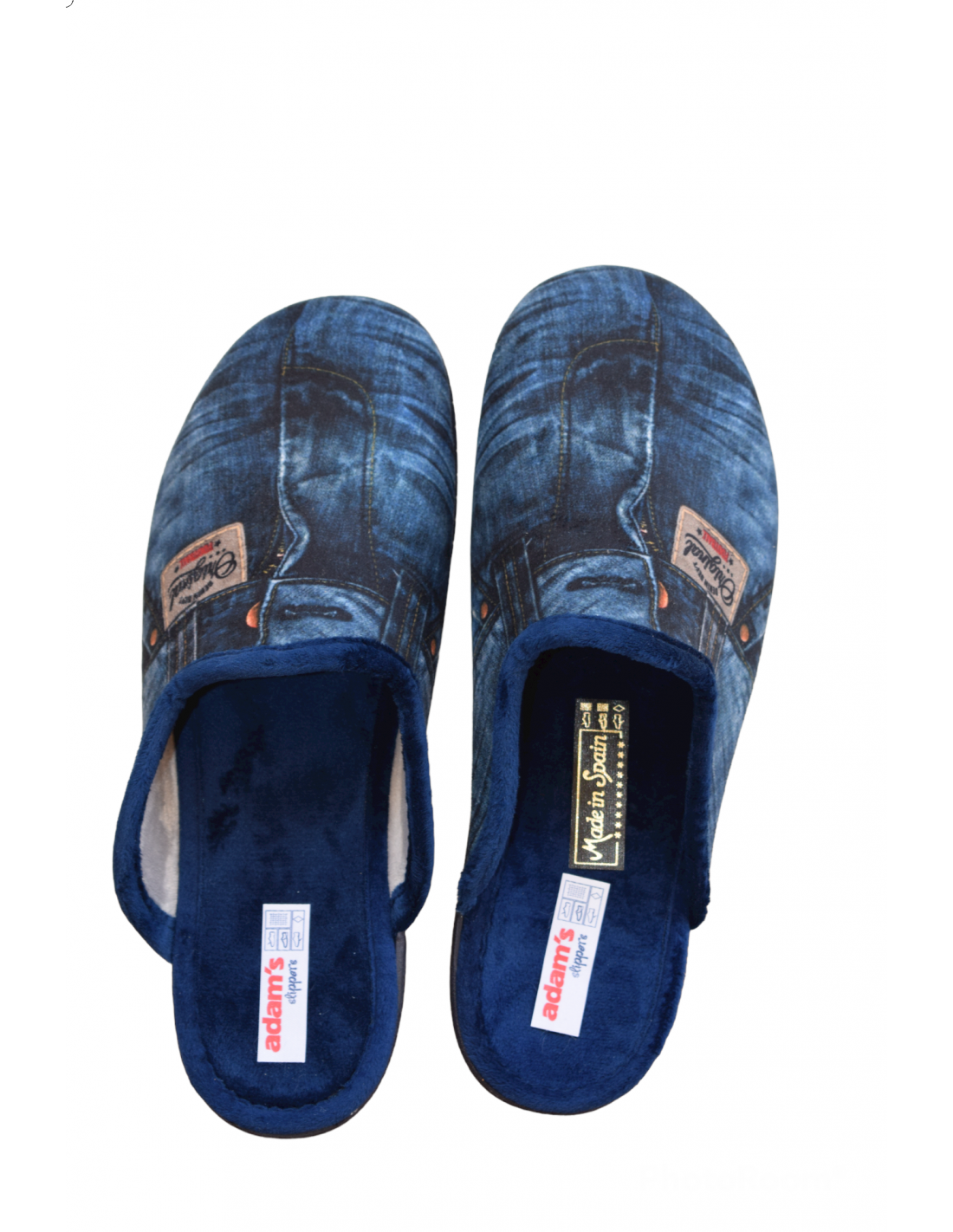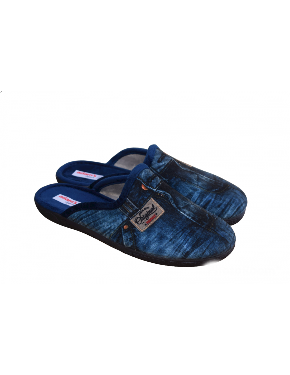 Ανδρική παντόφλα ADAMS Ισπανικής κατασκευής, υφασμάτινες, με σόλα υψηλής ποιότητας και υφασμάτινο πατάκι για άνετο πάτημα.