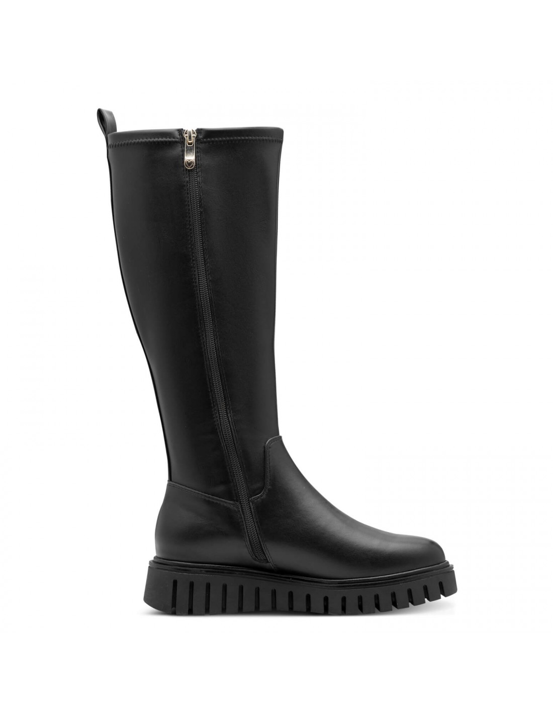 Γυναικεία μπότα MARCO TOZZI από συνθετικό δέρμα με σόλα υψηλής ποιότητας. Μονάδα MT FEEL ME, MT RPET LINING, λάστιχο στο πίσω μέρος, φερμουάρ στο πλάι και διακοσμητικό διπλό λουράκι-ζώνη.