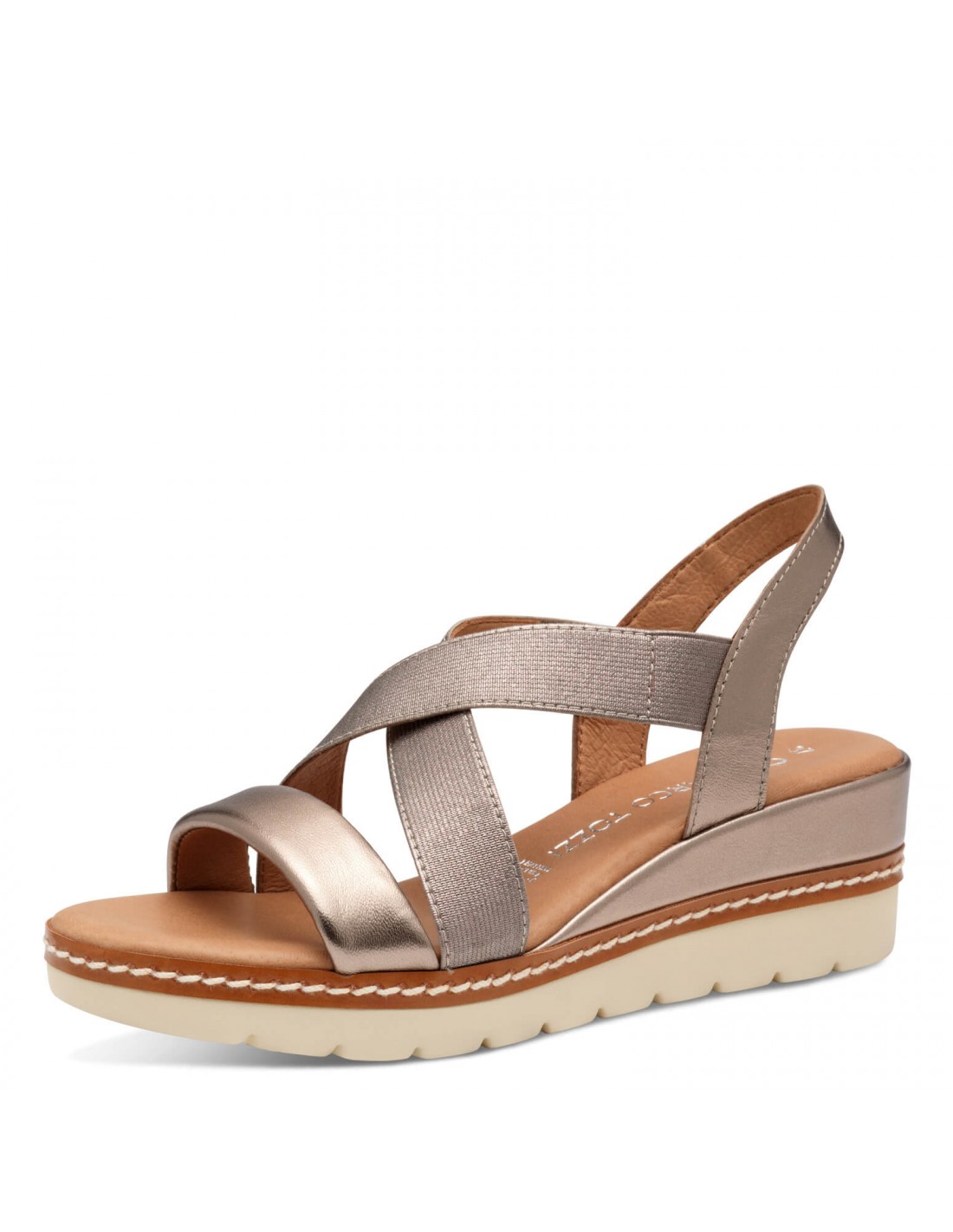Γυναικεία πέδιλο MARCO TOZZI από δέρμα με σόλα υψηλής ποιότητας, μονάδα MT FEEL+LEATHER, LEATH.SOCK+LIN., "F 1/2", ανατομικό πάτημα για άνετο και ξεκούραστο περπάτημα. Ύψος τακουνιού: 5,5 εκ.