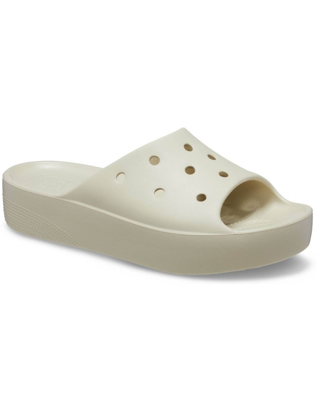 Η γυναικεία καλοκαιρινή παντόφλα CROCS Classic Platform Slide σε μπεζ χρώμα προσφέρει άνεση και μοντέρνο στυλ.