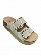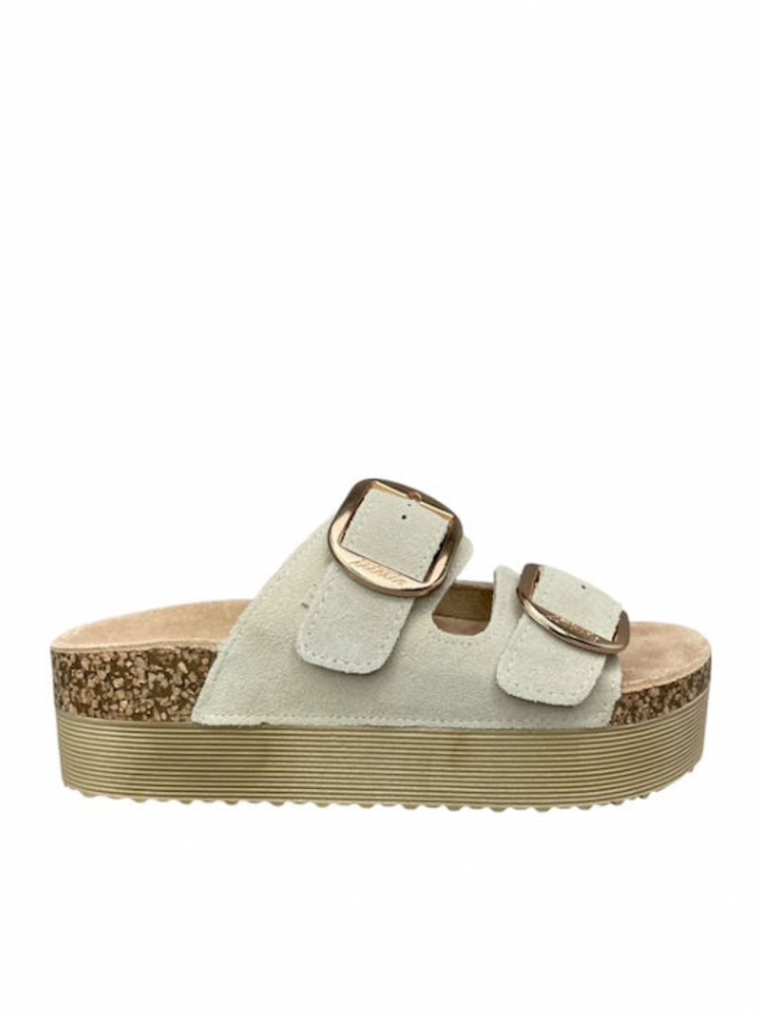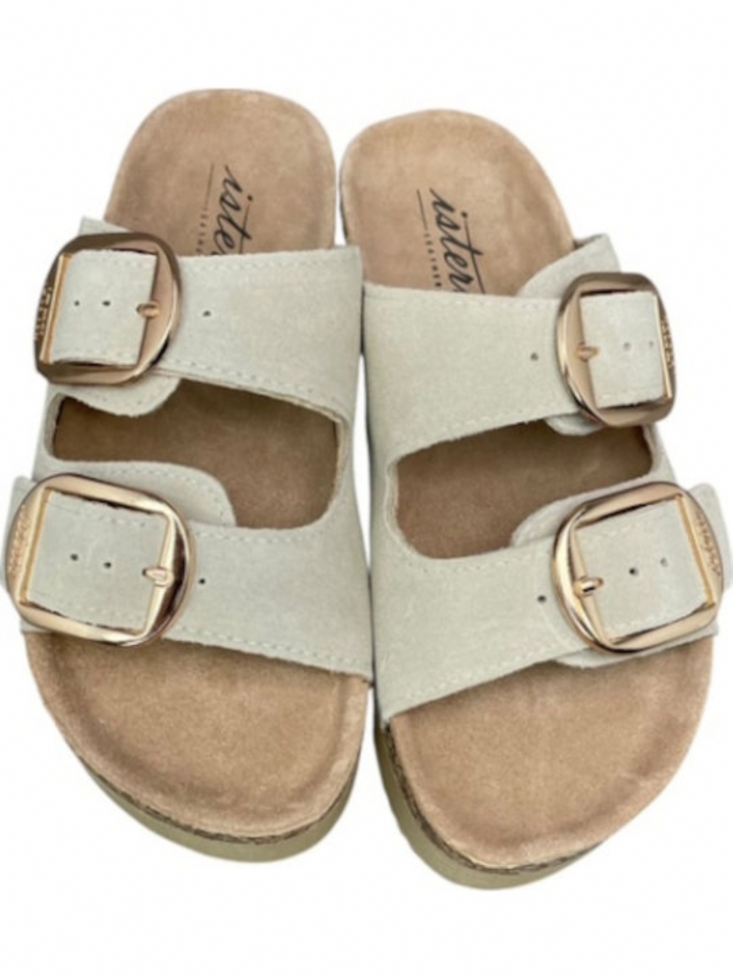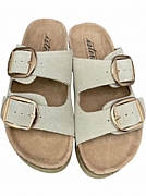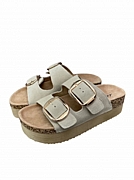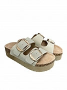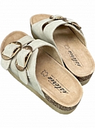 Ανακαλύψτε τη γυναικεία καλοκαιρινή παντόφλα δερμάτινη ISTERIA 25221 σε κομψό μπεζ χρώμα.