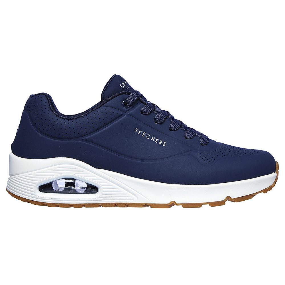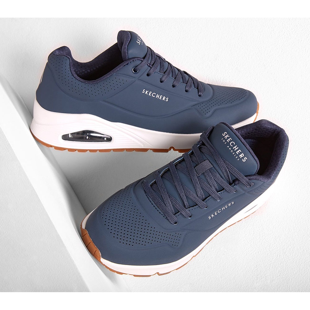 Ανακαλύψτε το ανδρικό sneaker SKECHERS STAND ON AIR σε κομψό μπλε χρώμα.
