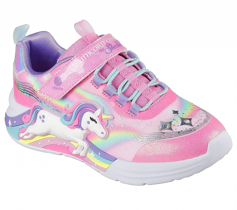 Ανακαλύψτε το παιδικό sneaker Skechers Unicorn Chasser σε ονειρεμένο ροζ χρώμα.